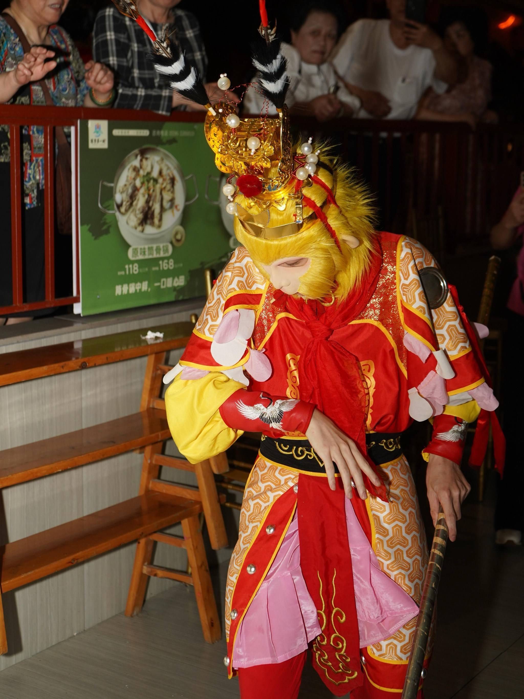 每天清晨五点,刘黎明都会在出租屋里对着镜子练眼神。“美猴王的火眼金睛不是瞪出来的,得带着点顽劣劲儿。”他边说边挑眉,眼角瞬间堆起戏腔里的“七分傲三分俏”。这套功夫是他从川剧变脸师傅那里偷师来的,十年前在湖南餐馆当学徒时,师傅甩着水袖告诫他:“技艺是皮,文化是骨。”现在,他把这句话刻在了金箍棒的内侧。 今年4月刚到金边时,刘黎明只是火锅店的驻场演员。直到有天暴雨,他披着美猴王戏服在屋檐下躲雨,几个柬埔寨孩子举着《西游记》柬语漫画冲过来喊“悟空”。“他们居然能背出‘三打白骨精’的剧情!”这个发现让他连夜开通海外社交账号,把变脸吐火的绝活搬到街头。如今他的短视频账号里,70万播放量的视频里,穿纱笼的柬埔寨大妈学着耍金箍棒,戴斗笠的小贩用中文喊“师傅请留步”。
